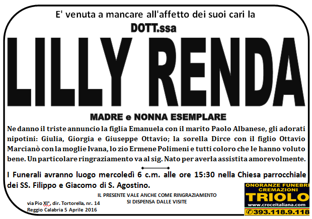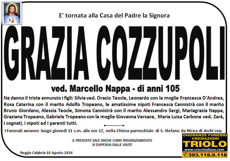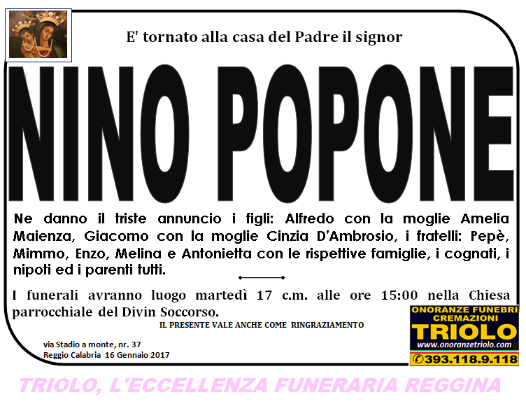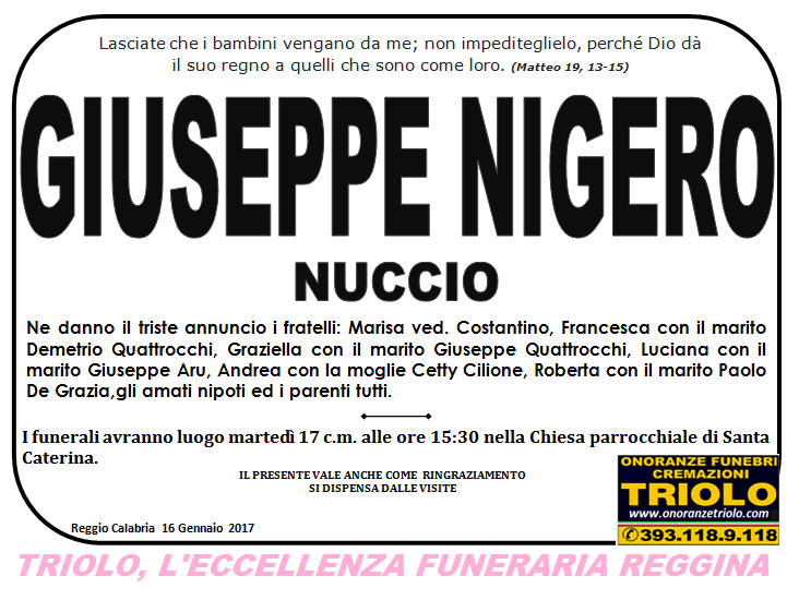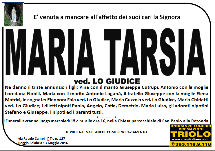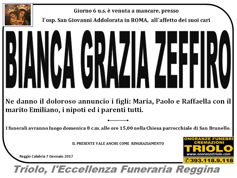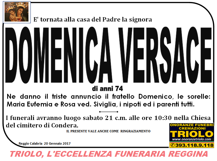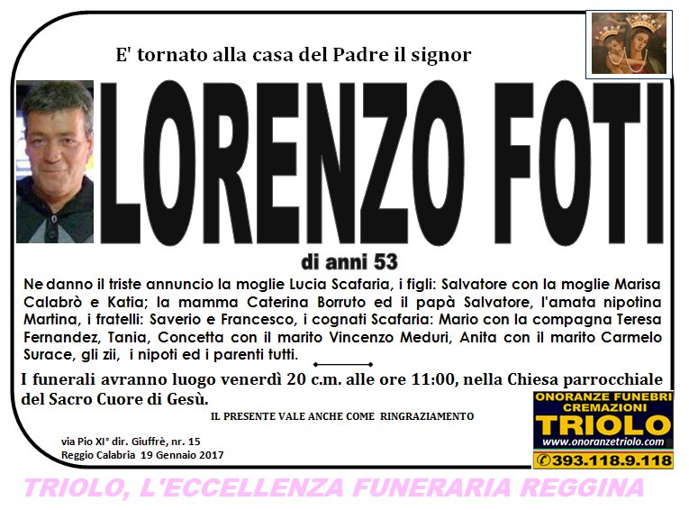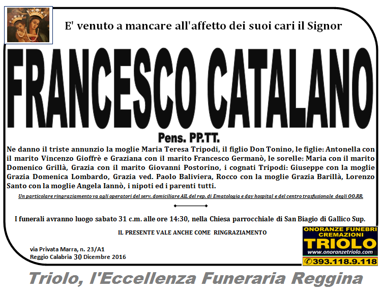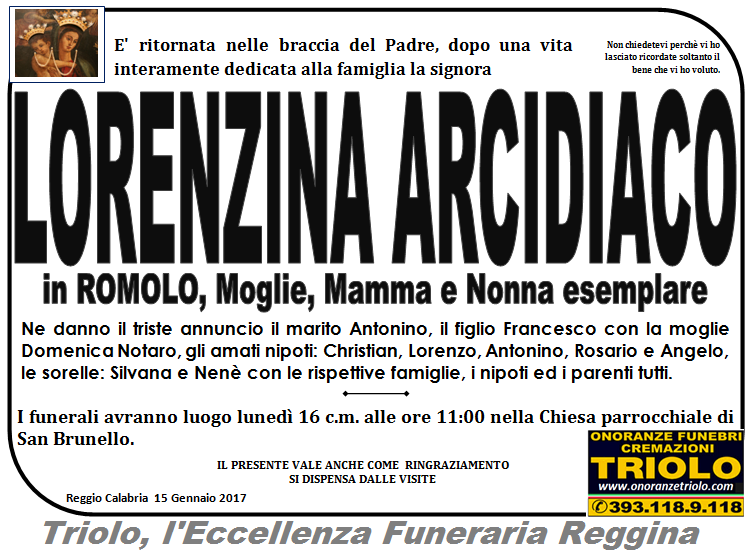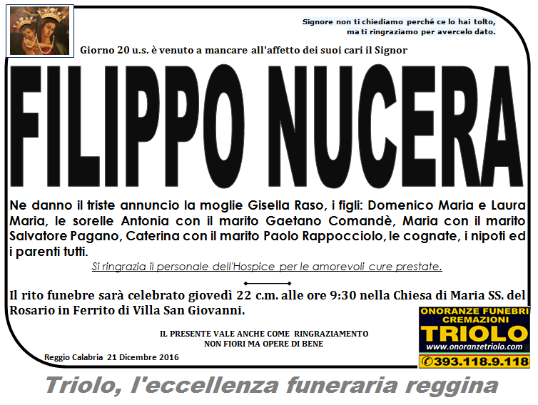 parlano di noi: strill.it ildispaccio.it contattaci al nr. 0965.29993 oppure al 393.118.9.118. Ciò che vi abbiamo detto è testimoniato dalle numerose famiglie che ci hanno dato fiducia, di seguito una serie di necrologie e quindi famiglie che da Gennaio 2016 ad oggi ci hanno scelto !