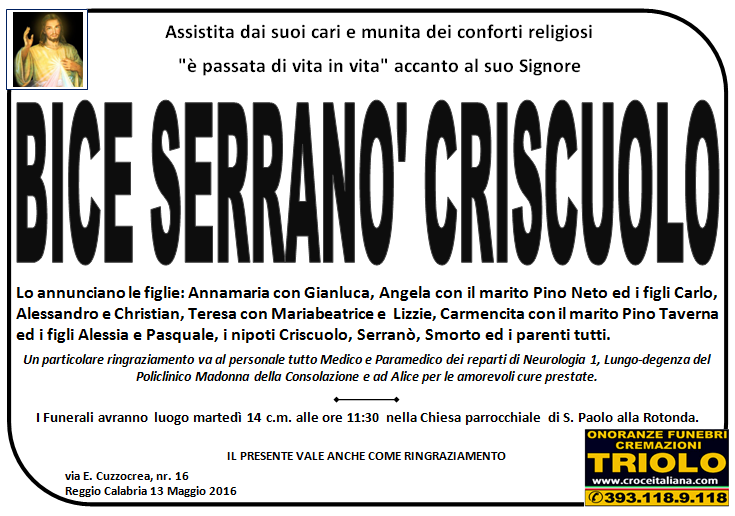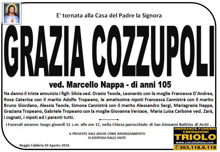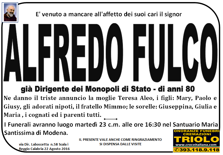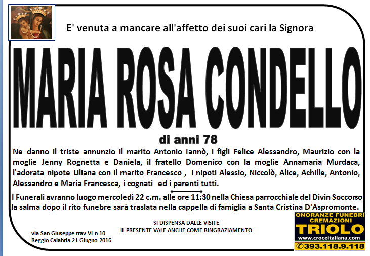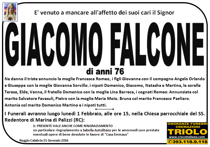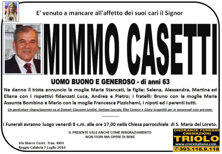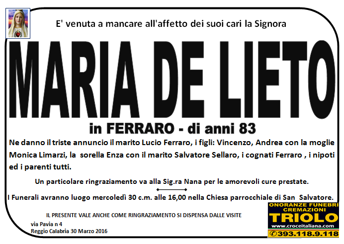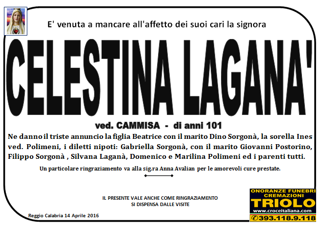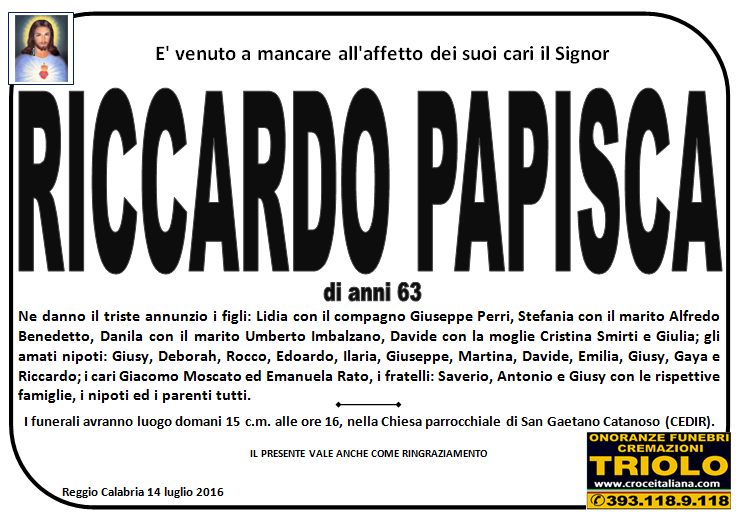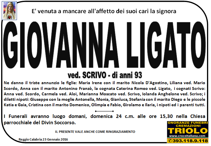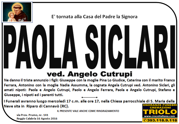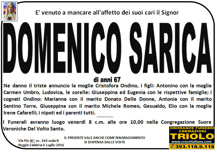 parlano di noi: strill.it ildispaccio.it contattaci al nr. 0965.29993 oppure al 393.118.9.118. Ciò che vi abbiamo detto è testimoniato dalle numerose famiglie che ci hanno dato fiducia, di seguito una serie di necrologie e quindi famiglie che da Gennaio 2016 ad oggi ci hanno scelto !