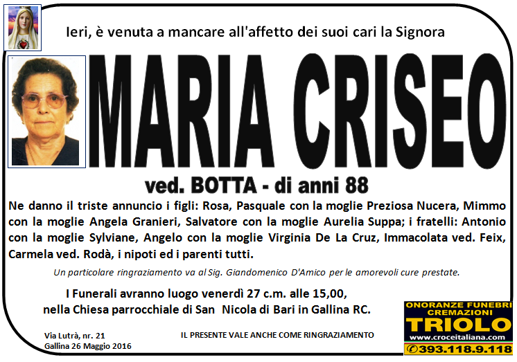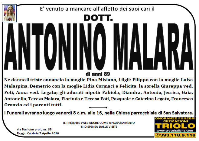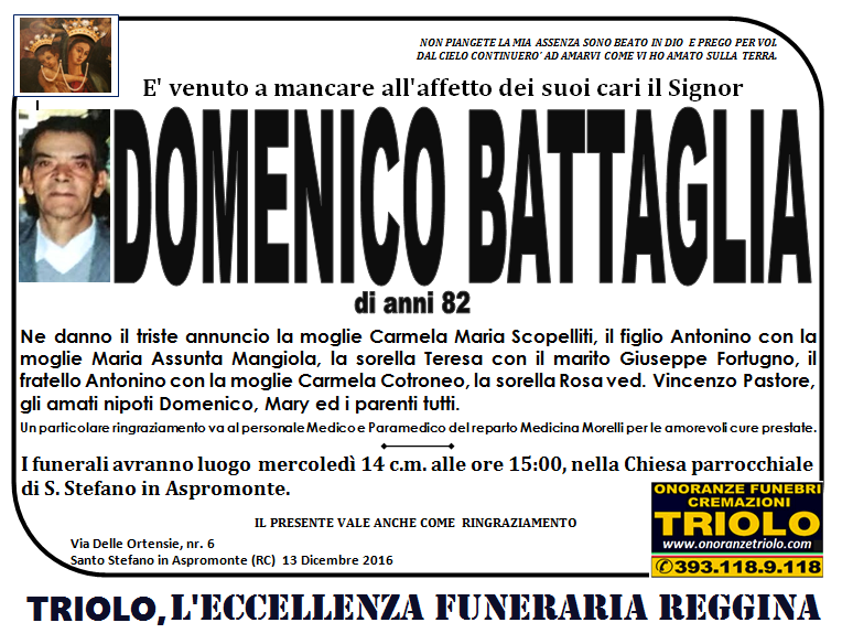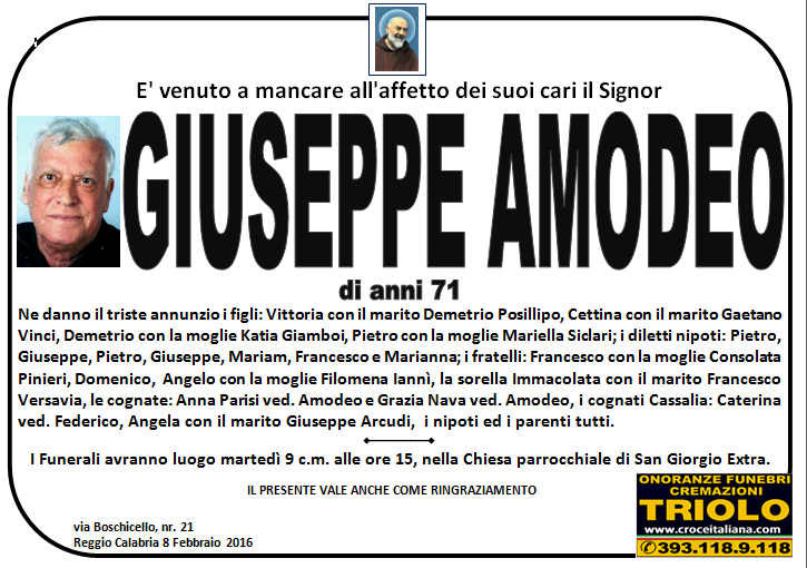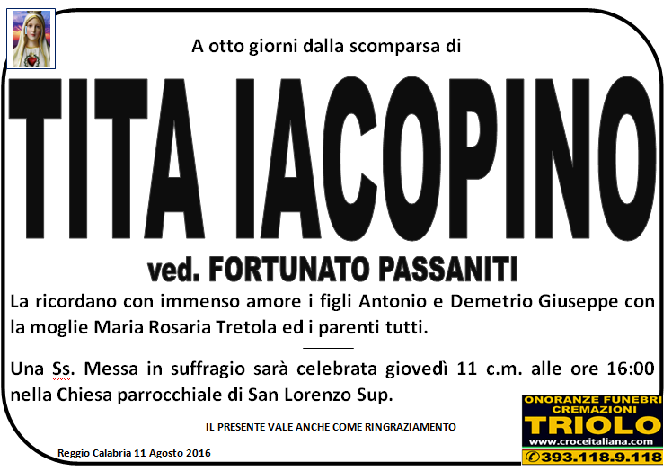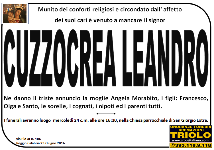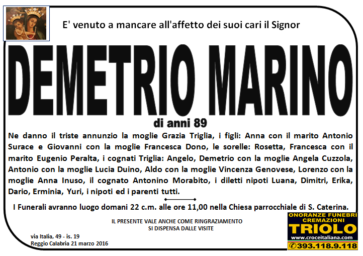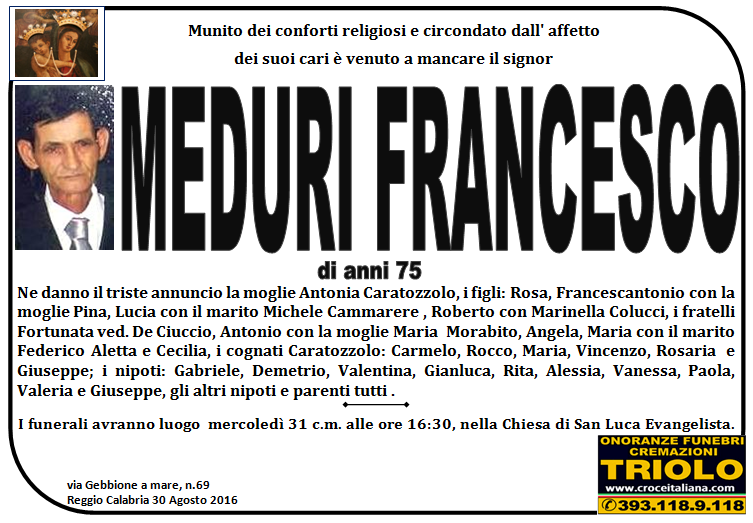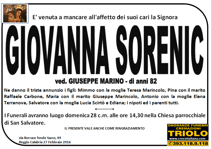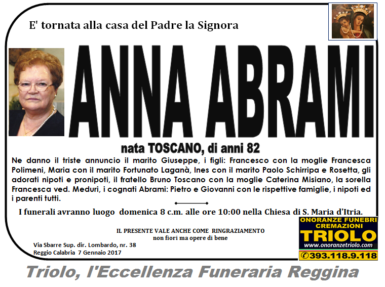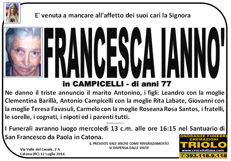 parlano di noi: strill.it ildispaccio.it contattaci al nr. 0965.29993 oppure al 393.118.9.118. Ciò che vi abbiamo detto è testimoniato dalle numerose famiglie che ci hanno dato fiducia, di seguito una serie di necrologie e quindi famiglie che da Gennaio 2016 ad oggi ci hanno scelto !