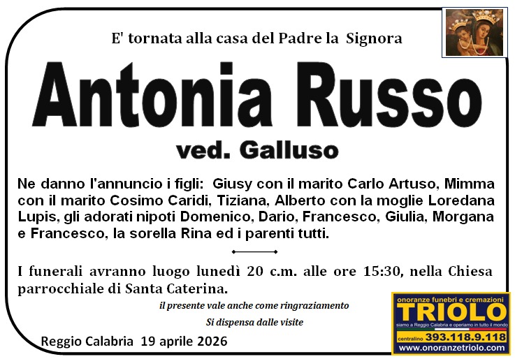 è mancata Antonia Russo ved. Galluso