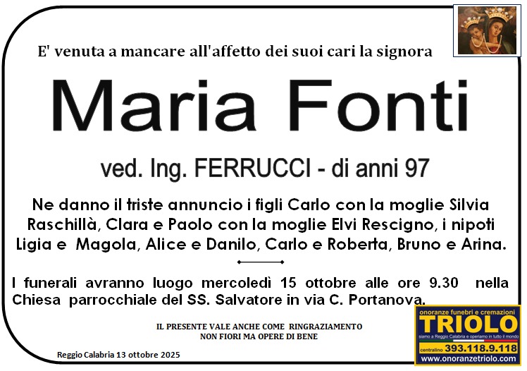 Ott 14, 2025 #mancata Maria Ferrucci Fonti