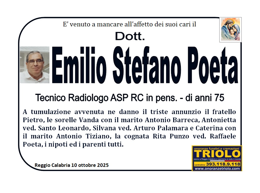 Ott 9, 2025 #è mancato il Dott. Emilio Stefano Poeta